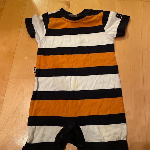 Myydään kuvan Lingon & Blåbär tumman sininen, edestä raitainen toppi / hihaton paita. Kokomerkintä paidassa 90, mutta mielestäni sopivan viimeistään 80cm pituisella lapsella. Pientä nukkahaituvaa näkyvissä raitaisella osuudella.
