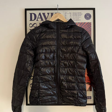 Kunnossa ei moitittavaa. Koko Italian 38, joka vastaa 34. Ks. mittoja. Kaiäuluksen sisällä ohut huppu. 90% untuvaa - kevyt ja lämmin. Nätti ja naisellinen malli.