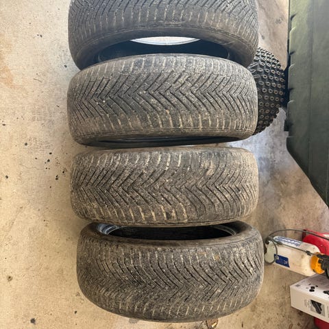 Pintaa renkaissa 6-7 mm. Renkaat valmistettu 2019 ja otettu käyttöön 2023, käytetty hetki ja sen jälkeen olleet varastossa säilössä.