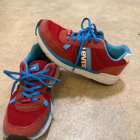 Hyväkuntoiset Levis Soho tennarit, koko 38. Myös Calvin Klein, Peak Performance, Nike, Adidas, Ralph Lauren, Hugo Boss, Marimekko tuotteet.
