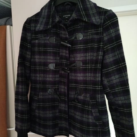 Myydään vähän käytetty naisten puolipitkä villakangas talvitakki. Vuorellinen. Merkki Terinit. Koko 40.