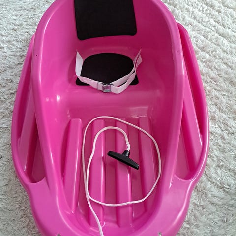 Musta hyväkuntoinen vauvapulkka. Käytetty yhden talven. Vyötäröhihna tallella ja vetonaru ehjä.