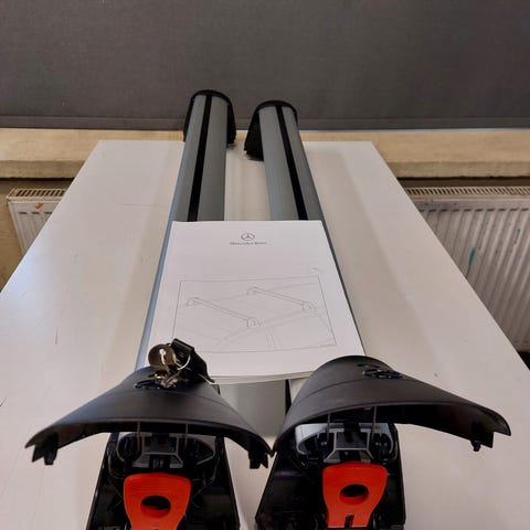 Mercedes-Benz C-farmari (S 205) merkkikohtaiset kattotelineet. Lentokoneen siiven muotoiset alumiiniprofiilit ja mustat päädyt. Telineiden päätykansien taakse piiloon jäävät kiinnitysruuvit momenttitoiminnolla, joka varmistaa turvallisen kiinnityksen kattokiskoihin. Lukittavat kannet ja 4 kaikki avainta tallessa. Telineet kiinnitetään auton kattokaiteisiin. Pakkaan ja lähetän tarvittaessa, jolloin hintaan lisätään 10 euron pakkaus- ja lähetyskulut.