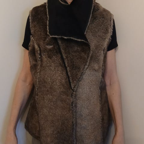 Siisti, lähes käyttämätön, uutta vastaava keinoturkisliivi, vetoketju, taskut edessä sivusaumassa, myös nurjalla puolella yksi tasku, koko 38