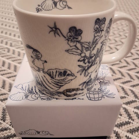 Uusi Merituuli Platina -muki, jota on säilytetty käyttämättömänä alkuperäispakkauksessaan.
