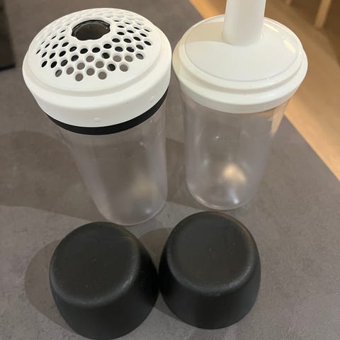 Myytävänä 2 kpl Tupperwaren sirottimia, myydään yhdessä. Jonkin verran käytön jälkiä (suurin jälki näkyy kuvassa).