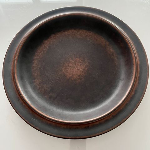 Arabia ehjä tarjoilulautanen, valmistettu keramiikasta, ruskea patinoitunut väri. Soveltuu astiakäyttöön.