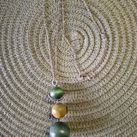 Hakusanat: Finnish design, Aarikka, puinen kaulakoru, luonnonvalkoinen kaulakoru, aarikka keräily , kiertotalous , vintage muoti , stailaukseen koruja, stailaajalle korut, näyttävä kaulakoru, sininen koru, bark blue necklace, Finnish jewelry brand