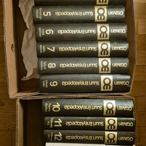 Myydään kuvassa näkyvät Ensi tietoni -kirjasarjan kirjat ja cd:t.
