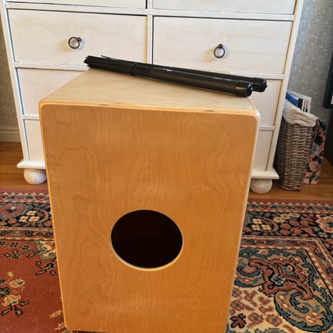 Itsetehty laatikkorumpu. Runko 16mm vaneri pähkinäviilulla. Etupaneeli Oregon mäntyä