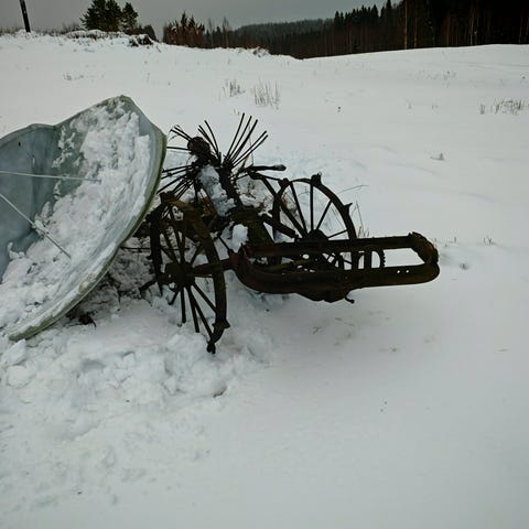 Perunan istutuskone traktorin perään, saahan tuosta hyvät istuinosat baarijakkaroihin. Tee joku häkkyrä traktorin perään vaikka. Kuppi hihnat löytyy myös.