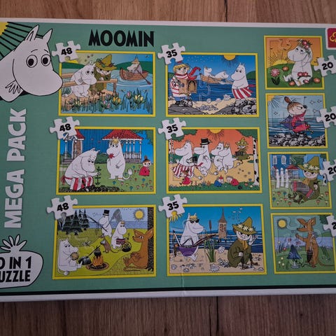 (Kuvassa näkyvät Taru sormusten herrasta, kartta ja Muumi-palapelit myyty)