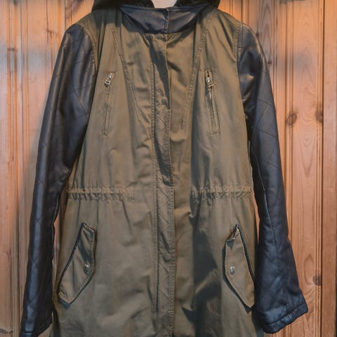 Talvitakkeja 36 - 38. Osassa turkiskaulus, osa kokonaan turkista. Värit lähinnä mustaa, harmaata ja vaaleaa.