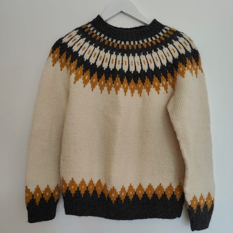 Myydään käyttämätön itse neulottu Riddari -neule. Lanka islantilainen 100% villalanka Lettlopi.