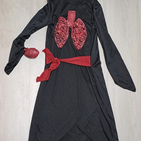 Lasten halloween asu. Mukana myös pääkoriste, minkä saa pinneillä hiuksiin kiinni. Tekee asusta ”jännemmän”.😊