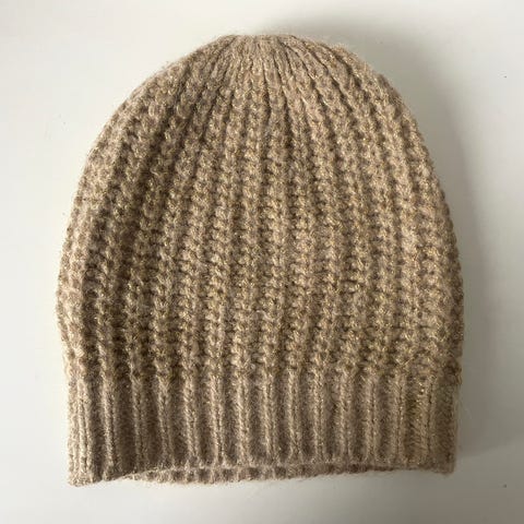 Luonnonvalkoinen itseneulottu pipo 7 veljestä -langasta.
