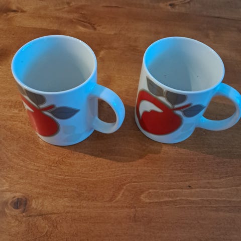 Hyvässä kunnossa punaiset mukit.