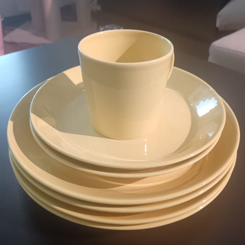 Iittala ja arabia teemaa..4 pullalautasta tarroineen..1 pullalautanen ilman tarraa..koko 17..11 kahvikuppia (pieniä)/Hyvä kunto..ja 11 alustassia..Kaikki kerralla