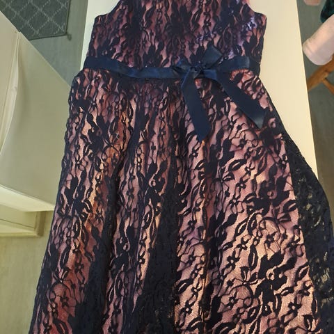 1. Beige-hopeinen juhlamekko. Koko 128. Ciraf 8e.