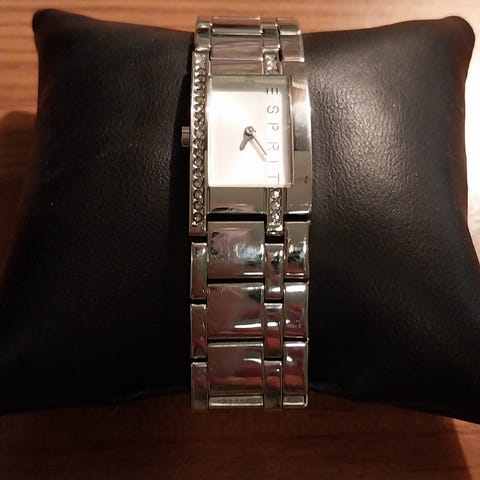 Esprit Houston Valkoinen/Teräs. Naisten rannekello metalli rannekkeella. Pientä käytönjälkeä näkyvissä. Patteri täytyy vaihtaa. Kunto ok.