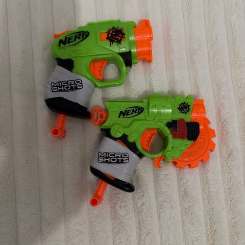Myydään Nerf monitoimiase ja muun merkkinen jousipyssy. Jousipyssystä vaihdetty