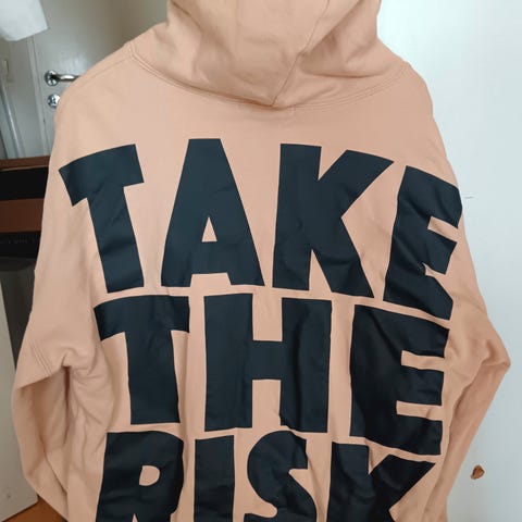 Iso huppu toimii "kaulahuivina". Punahilkka-huppu. Pitkämallisen hupparin saa myös neppareilla kiinni, ja voi helpommin käyttää avonaisena. Peukaloreiät hihansuissa. Niskasauma-helmapituus on 72cm.