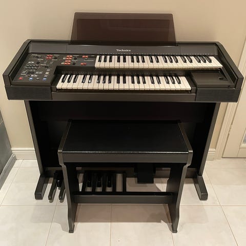 Itsellä koristeena maanneet urut. Soi ainakin jotenkin, kokeilla saa paikan päällä. Itselle tuntematonta alaa, sillä soittotaitoa tai tietoa ei ole. Ulkokuori siisti, säilytetty vain sisällä. Omat kantajat mukaan, raskas.