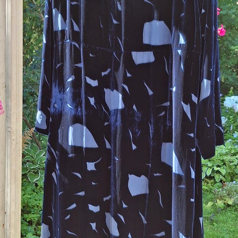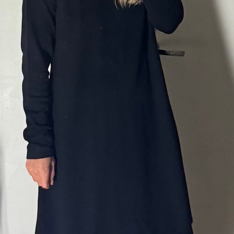 Yönsininen. Toimii myös simppelin tyylikkäänä juhlamekkona, tähän jakku päälle niin olet valmis mihin vain, juhliinkin!
