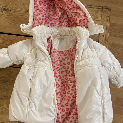 Myydään hyväkuntoinen toppatakki kokoa 86. Hyvin vähän tummentumaa helmassa ja hihoissa, ei juurikaan huomaa. Viimeisessä kuvassa väri lähimpänä totuutta.