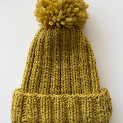 Kaunis kirjottu kaksinkertainen tupsupipo, koko M. Valmistaja suomalainen Neulepaja, Kolari.