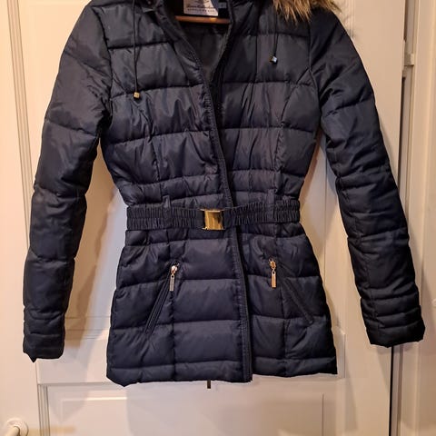 Koko XS, vyötärön kohdalla on kiristysnauha takin sisäpuolella.