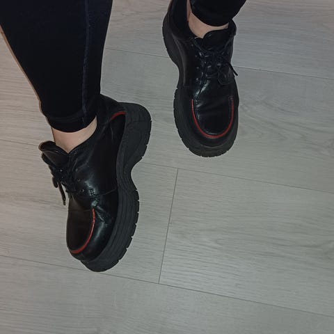 Kauniit kotimaiset Janita kiiltonahkakengät, mustat, koko 38, korko 8cm, lämmin vuori.