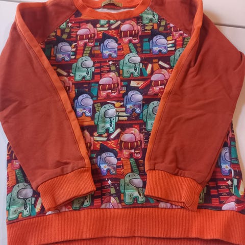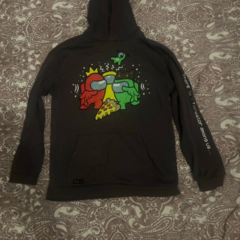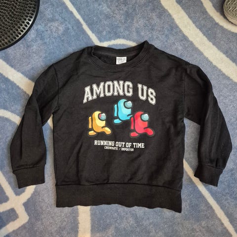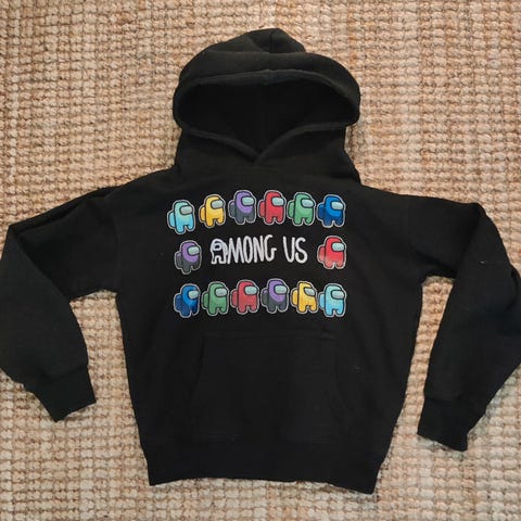 Musta among us huppari. Kokomerkintä 128, mutta minusta on pienempi. Ennemminkin 116/122