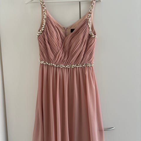 Todella kaunis juhlamekko, esim. Vanhojen tansseihin. Mekko laskeutuu upeasti. Mekossa myös alushame. Takapuolella kaunis kirjailu. Mekkoa pidetty noin 3-5 kertaa. Mukaan myös hartiahuivi. Sopii monenlaiseen juhlatilaisuuteen.