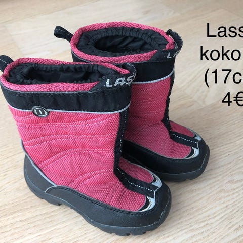 Monnalisa vedenkestävät talvisaappaat. Koko 25. Takapuolella ollut monnalisa tarrat mikä on irtonut. Pohjasta kannan kohdassa lähtenyt pinkki väri. Mitään ei siis ole rikki eikä mitään muuta- vaan väri kulunut pois pohjan alhaalta kannan kohdassa- viimeinen kuva. Täysin vedenpitävät ja lämmit saappaat seuraavalle.