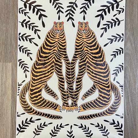 NÄYTTÄVÄ julistekangas tiikeripainatuksella! Kokoa kankaalla on 50cm x 70cm. Kankaita löytyy enää 2 kpl ja kappalehinta on mainittu tässä ilmoituksessa (12€), jos haluat molemmat, ota se huomioon tarjousta tehdessäsi.