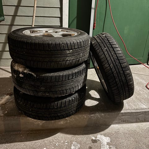 Auto myyty mytta renkaat jäi.