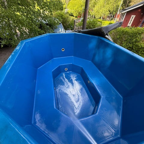 Ostetaan edullinen kylpytynnyri ulkopuolisella kaminalla.