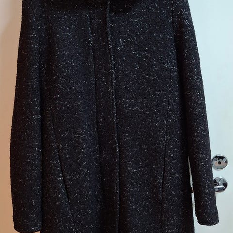 Myydään vähänkäytetty Vilan musta-harmaa jättihupullinen villakangastakki. Naisten koko 42.