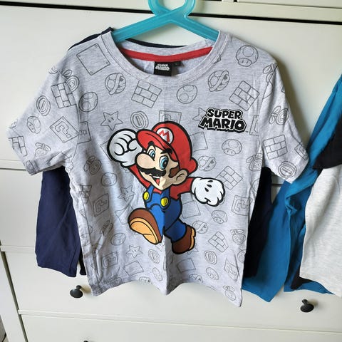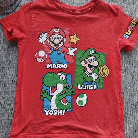 Difuzed SuperMario t-paita 134/140. Väri haalistunut uudesta ja saanut pesuhaitua pintaan.