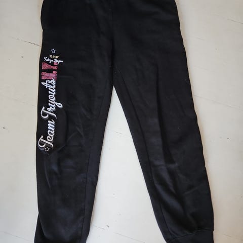 Hyväkuntoiset mutta paikoittain hieman nukkaiset tyttöjen collegehousut.