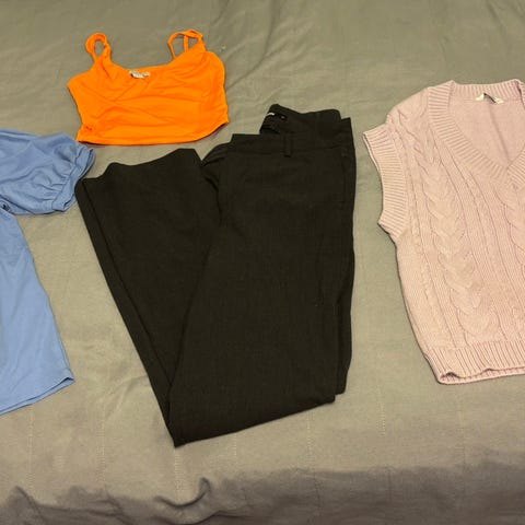 Myydään neljän vaatteen s-kokoinen vaatepaketti hintaan 5 e. Tiilenpunainen neulepaita on vähän huonokuntoisempi, muut ovat hyvässä kunnossa. Mekko on kokoa 36. Toridiili, Mobilepay, tilisiirto tai nähdessä käteinen käyvät maksutavaksi.