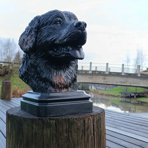 Leonberger. Koiraveistoksen korkeus 20 cm.