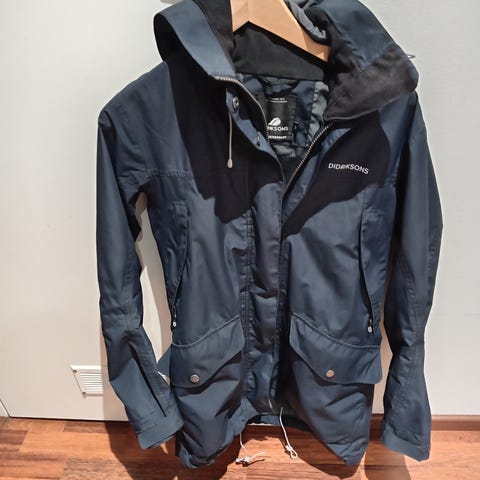 Myydään Didriksonin välikausitakki. Käytetty jo paljon, mutta edelleen varsin hyvässä kunnossa ja mielestäni siisti seuraavalle. Napeissa, hihansuissa ja selässä kuminauhan kohdalta näkyy jnkv kulumaa (näistä kuvat). Yleisilme mielestäni edelleen varsin siisti. Pitää vettä. Väri on tummanvihreä/khaki.