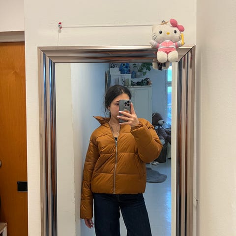 Vain muutaman kerran päälle eksynyt vakosamettipintainen syystakki. Kevyt toppaus sisällä.
