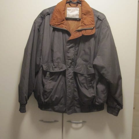 Harmaa miesten vanha hyvässä kunnossa oleva miesten takki koko 50.Takissa kevyet olkatoppaukset.Päällinen 65% polyesteriä 35% puuvillaa.Vuori 100% nylonia.Edessä neljä isoa taskua,povitasku.