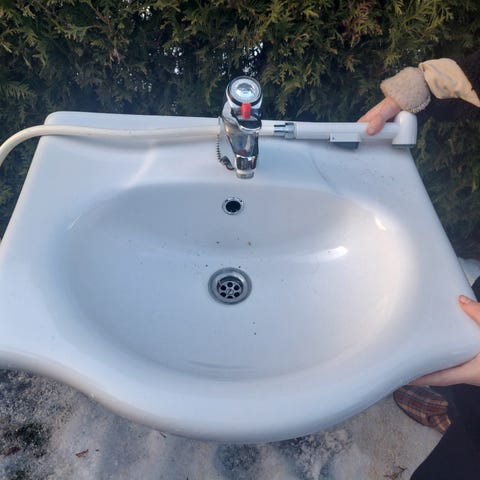 Käytettyä pesubetonilaattaa VALKOISELLA rouheella n. 25m²