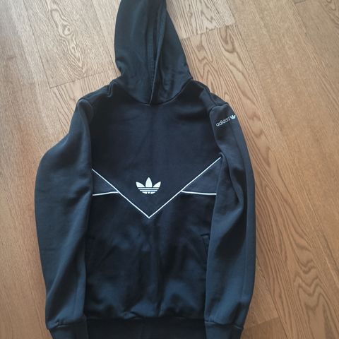 Myydään musta adidas huppari. Koko merkintää ei ole mutta käytetty 170/174cm pituisella. Väri hieman varmasti vaalentunut uudesta, mutta ei merkittävästi. Nauhoissa kulumaa.
