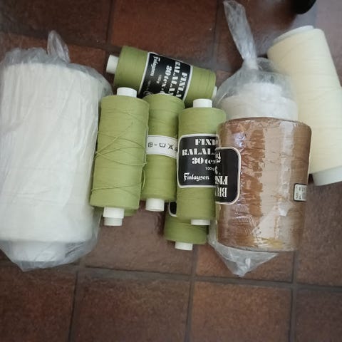 Kotimaista mustaa 6- säikeistäå kalalankaa valmiiksi luotu loimi , pituutta on n.11,50metriä ja lankoja 340 !