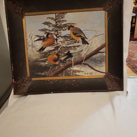 Carl Danielsonin akvarellityö Punatulkut vuodelta 1925. Työn korkeus on 35 cm ja leveys 26.